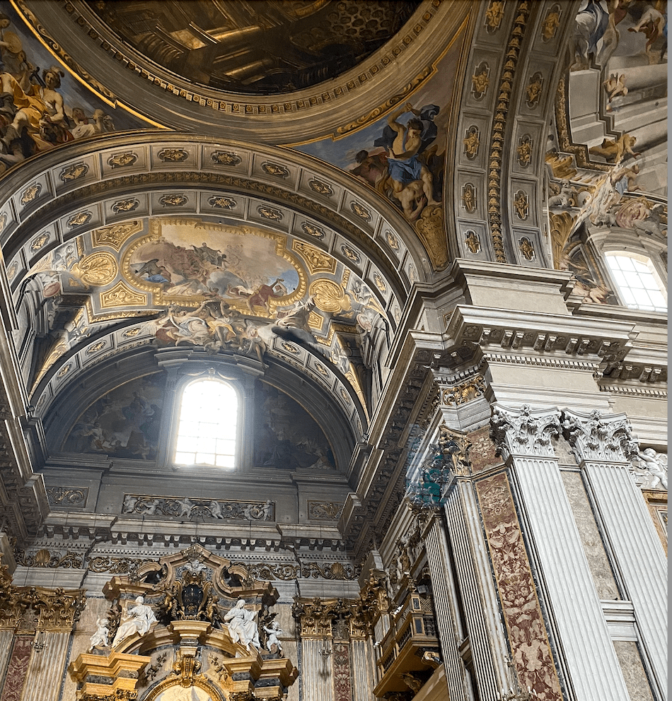 Last week I walked into Sant’Ignazio of Loyola Church. The song “I Will Be Blessed” by Ben Howard began playing in my earbuds, tickling my brain through my ears. My breath sunk and my cheeks stung. I felt like the place was revolving around me, in all its years, in every soul that has stepped on the same marble where I stood. In a place entirely unlike Costa Rica, I felt the carvings and the frescos sink into me with the same mysterious wisdom as the mountains and trees did.